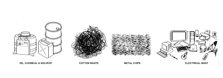- Oily Waste: Lubricating oils, coolants, and hydraulic fluids.